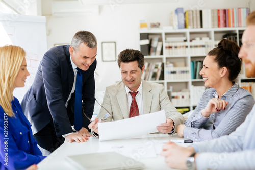 © NDABCREATIVITY, Obraz premium Succeful business partners brainstormin