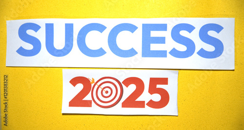 © visuals6x, Obraz premium Success in 2025 concept background with typography written on the paper.