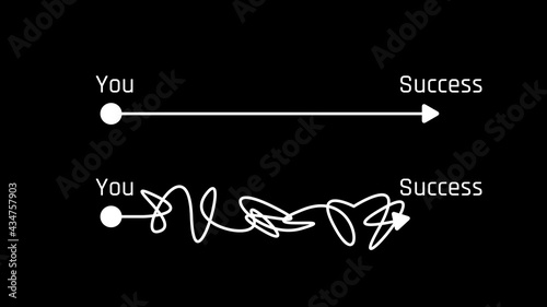 Fototapeta premium Success Line Process and Struggle Concept on Black Background