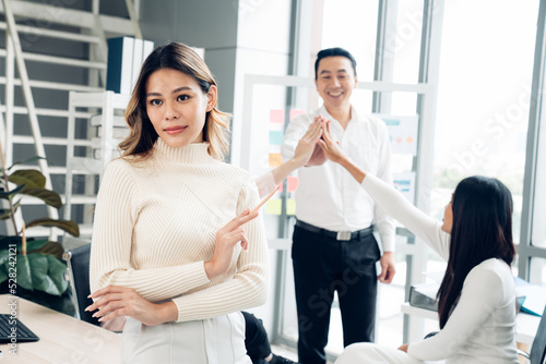 Fototapeta premium Successful asian businesswoman working and looking camera in a meeting room.