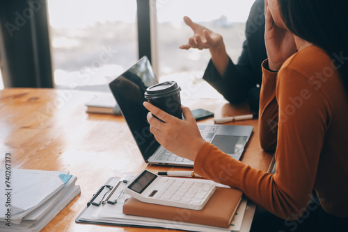 Fototapeta premium Successful business group are celebrating and looking to digital tablet...