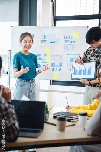 © Daenin, Obraz premium Successful business people present analytics reports while working with colleagues in the modern office.