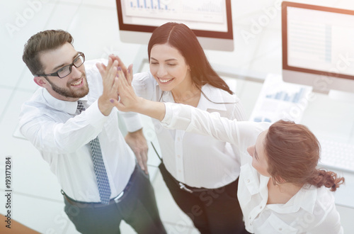 © ASDF, Fototapeta premium successful business team giving each other a high five .