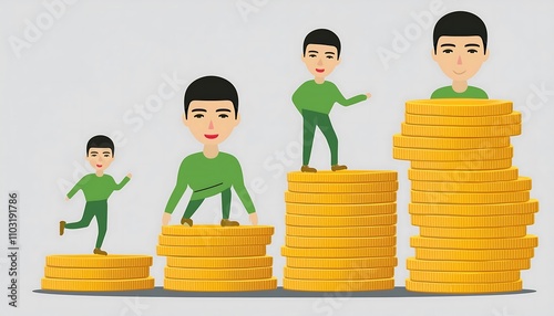 © thanakom, Naklejka premium Successful businessman analyzing financial growth on 3D bar chart