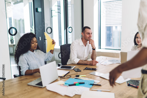 © BullRun, Fototapeta premium Successful colleagues talking in bright office
