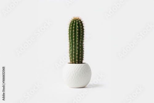 © -Quantum Pixels-, Naklejka premium Succulent cactus displayed in a pot against a plain backdrop