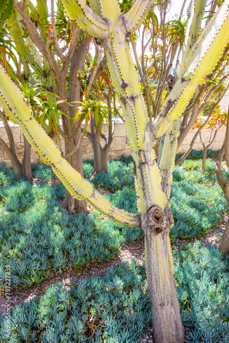 © Adam, Fototapeta premium Succulent garden growing under tree shade.