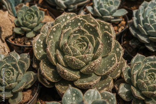 © TheWaterMeloonProjec, Obraz premium Succulent Lithops aucampia from Southern Africa in a specialized botanical collection