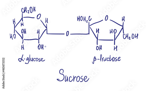 © spline_x, Obraz premium Sucrose chemical structure. Vector illustration Hand drawn
