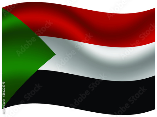 © Oleksandr, Naklejka premium Sudan Beautiful national flag with waving effects. original colors and proportion. Amazing design vector illustration for web,logo, icon and background.from countries flag set.