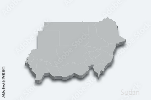 Obraz premium Sudan 3d map with borders regions