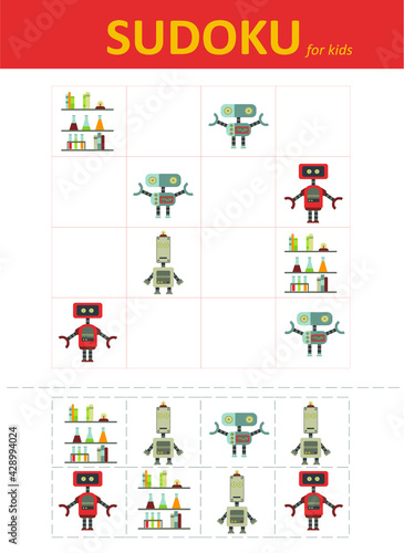 © Anastasiya, Fototapeta premium Sudoku for kids. Children's puzzles. Educational game for children. cute robots