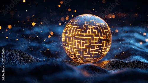 Fototapeta premium Sudoku puzzle merging into a dynamic 3D sphere of glowing pathways