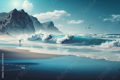 © Charlotte, Fototapeta premium Sufers Beach. Generative ai.