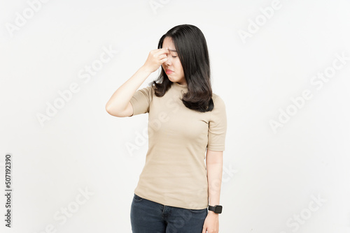 Fototapeta premium Suffering Headache Of Beautiful Asian Woman Isolated On White Background