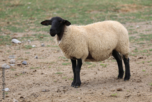 Fototapeta premium suffolk sheep with black head and legs without wool