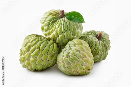 © Poetra RH, Fototapeta premium Sugar apple or custard apple isolated on white background. Exotic tropical Thai annona or cherimoya fruit.