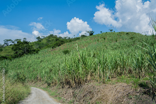 © Chris Ayala, Fototapeta premium sugarcane crops with stone paths