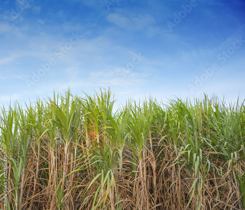 © anatskwong, Fototapeta premium Sugarcane field in blue sky