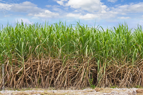 © teptong, Obraz premium Sugarcane field in cloudy sky