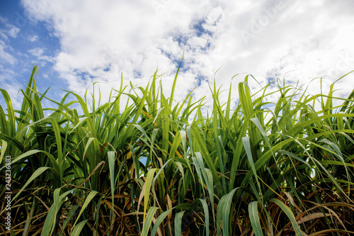 © RK1919, Obraz premium Sugarcane leaves at sky.