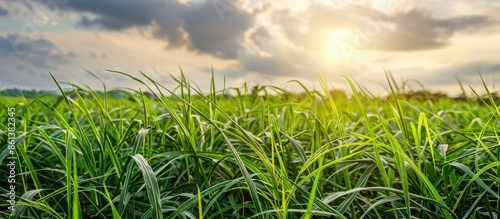 Fototapeta premium Sugarcane plants growing in a field with ample copy space image.