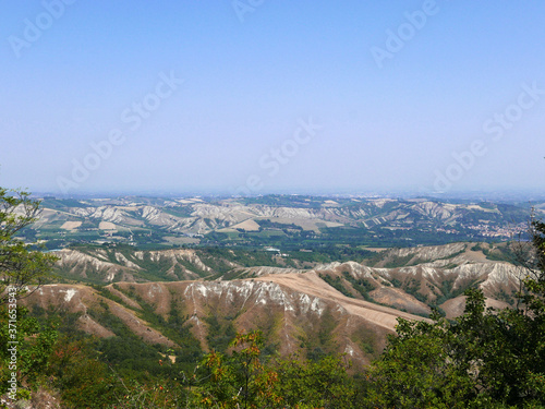 © tiziana, Fototapeta premium suggestiva vista delle formazioni di calanchi di gesso in emilia romagna, vicino a brisighella in italia
