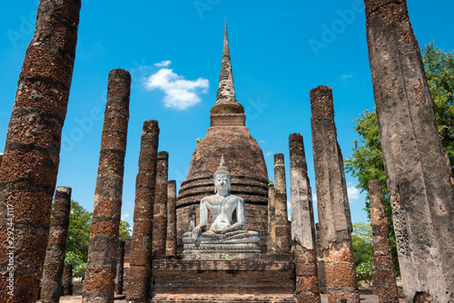© beibaoke, Fototapeta premium Sukhothai, Thailand - Apr 08 2018: Wat Sra Sri in Sukhothai Historical Park, Sukhothai, Thailand. It is part of the World Heritage Site - Historic Town of Sukhothai and Associated Historic Towns.