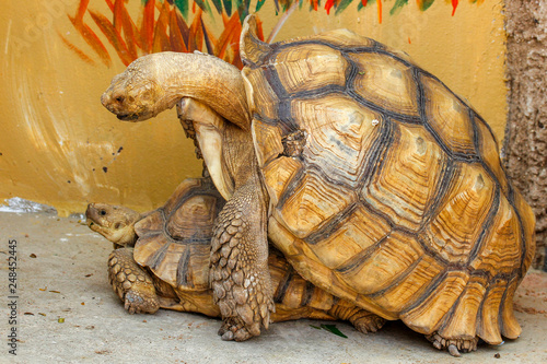 Naklejka premium Sulcata tortoise have sex