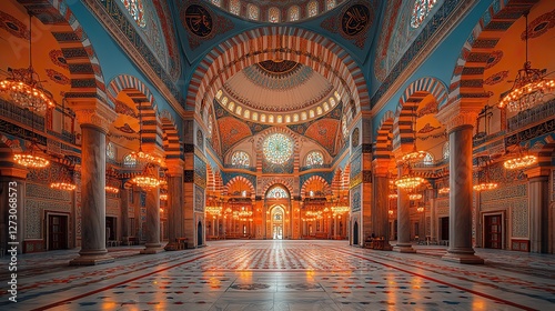 © Wiseman, Obraz premium suleymaniye mosque interior with ornate dome and chandeliers istanbul turkey