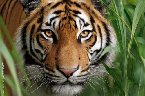 © Gatherina, Fototapeta premium Sumatran tiger hiding in the lush green vegetation