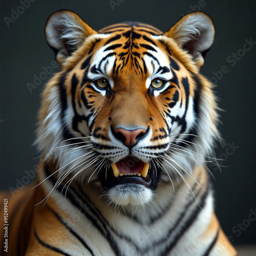 © CheeSiong, Naklejka premium Sumatran tiger showing teeth staring intensely