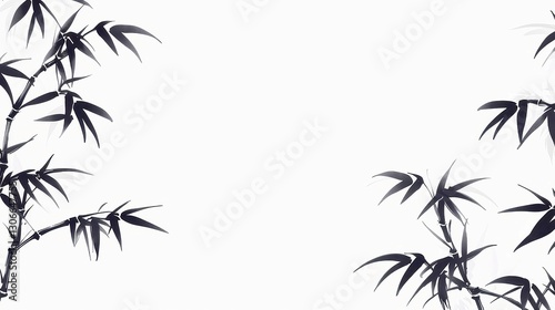 Naklejka premium Sumi-e Bamboo Forest Background, elegant ink brushwork, serene and minimalist design, promotes tranquility, ideal for meditative spaces or calming environments