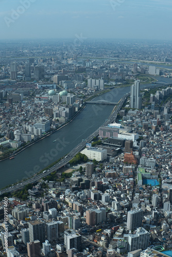 Fototapeta premium Sumida River and Tokyo cityscape viewed from Tokyo Skytree