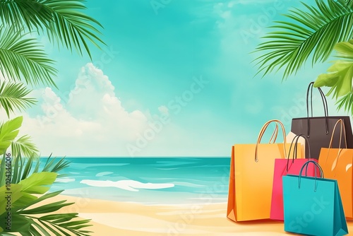 © mamun, Obraz premium summer banner with large content space and a shopping background, Generative AI.