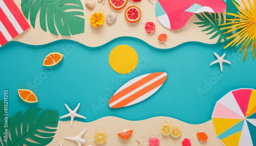 © Edwin, Naklejka premium summer beach concept 2d illustration, beach umbrella elements