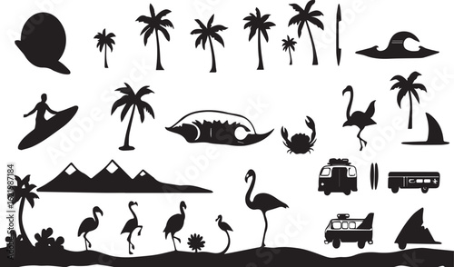 © BADHON , Naklejka premium Summer Beach Day Vector Pattern on White Background