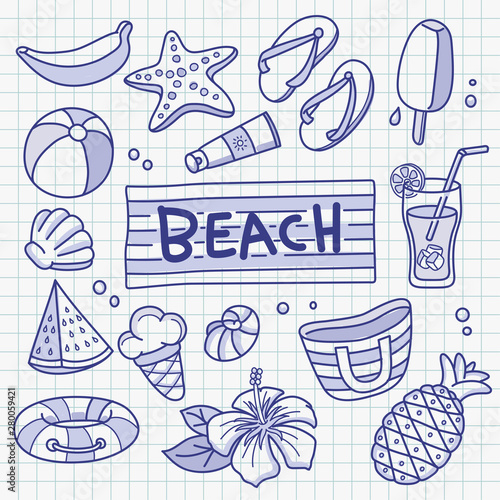 © Fredy Sujono, Naklejka premium Summer Beach Holiday Ballpoint Sketch Doodle Vector Illustration