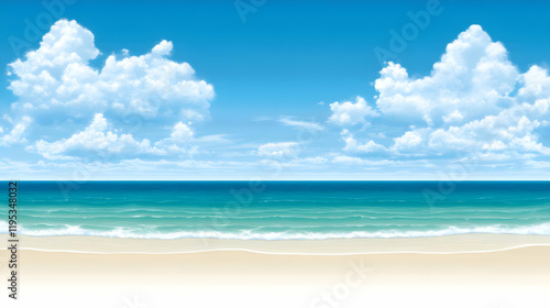 Obraz premium Summer Beach Illustration: Ocean, Sky, Clouds