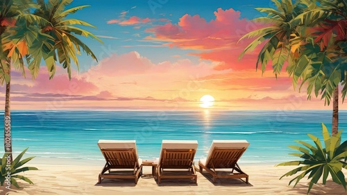 Obraz premium Summer beach landscape. Luxury vacation and holiday concept, summer travel...