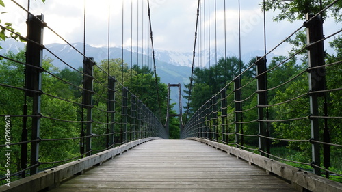 © Hirotsugu, Obraz premium SUMMER, beautiful nature landscape from the wooden bridge in the northern alps, Japan, Hakuba