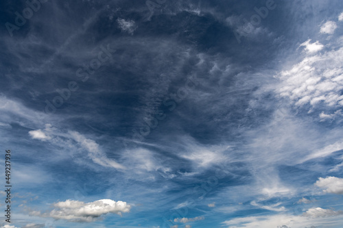 Obraz premium Summer Blue Sky and white cloud white background. Beautiful clear cloudy in...