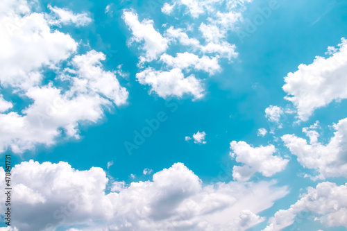 © Amphawan, Obraz premium Summer blue sky with clouds patterns close up on background