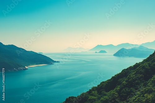 © BLUEE, Fototapeta premium Summer coast wallpaper Image clean simple background,generation AI