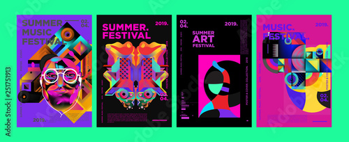 Fototapeta premium Summer Colorful Art and Music Festival Poster and Cover Template for Event,...