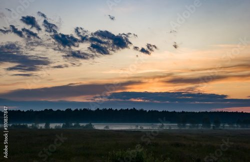 © Антон Ямщиков, Fototapeta premium Summer colorful landscape - sunset and river