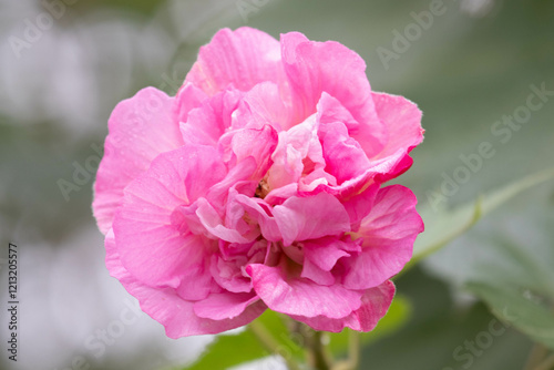 Fototapeta premium Summer Concept ,Beautiful pink flowers in the garden , Cotton Rose Hibiscus