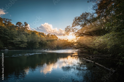 © AkuAku, Fototapeta premium Summer Dawn by a Woodland Stream