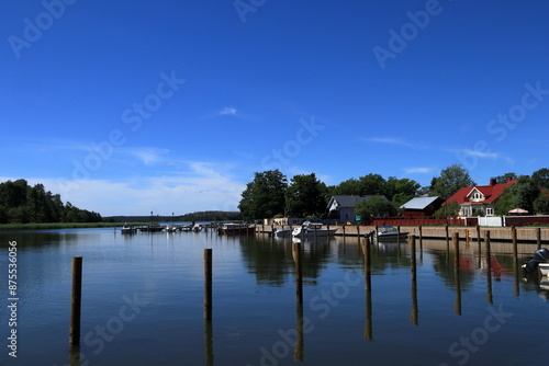 © Martin of Sweden, Fototapeta premium Summer day at the Baltic sea. Wooden poles in blue water. Ekenäs, Finland, Europe.