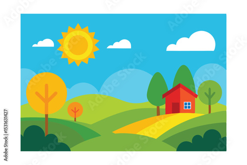 Fototapeta premium Summer Day Rural Landscape Illustration